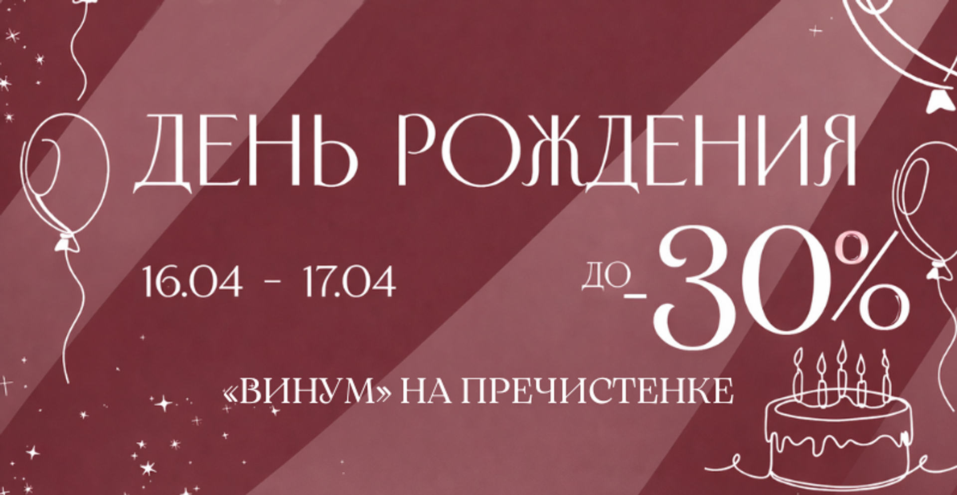 С днём рождения «Винум» на Пречистенке! Празднуем день рождения «Винума» на Пречистенке – старейшей винотеки Москвы. С 16 по 17...