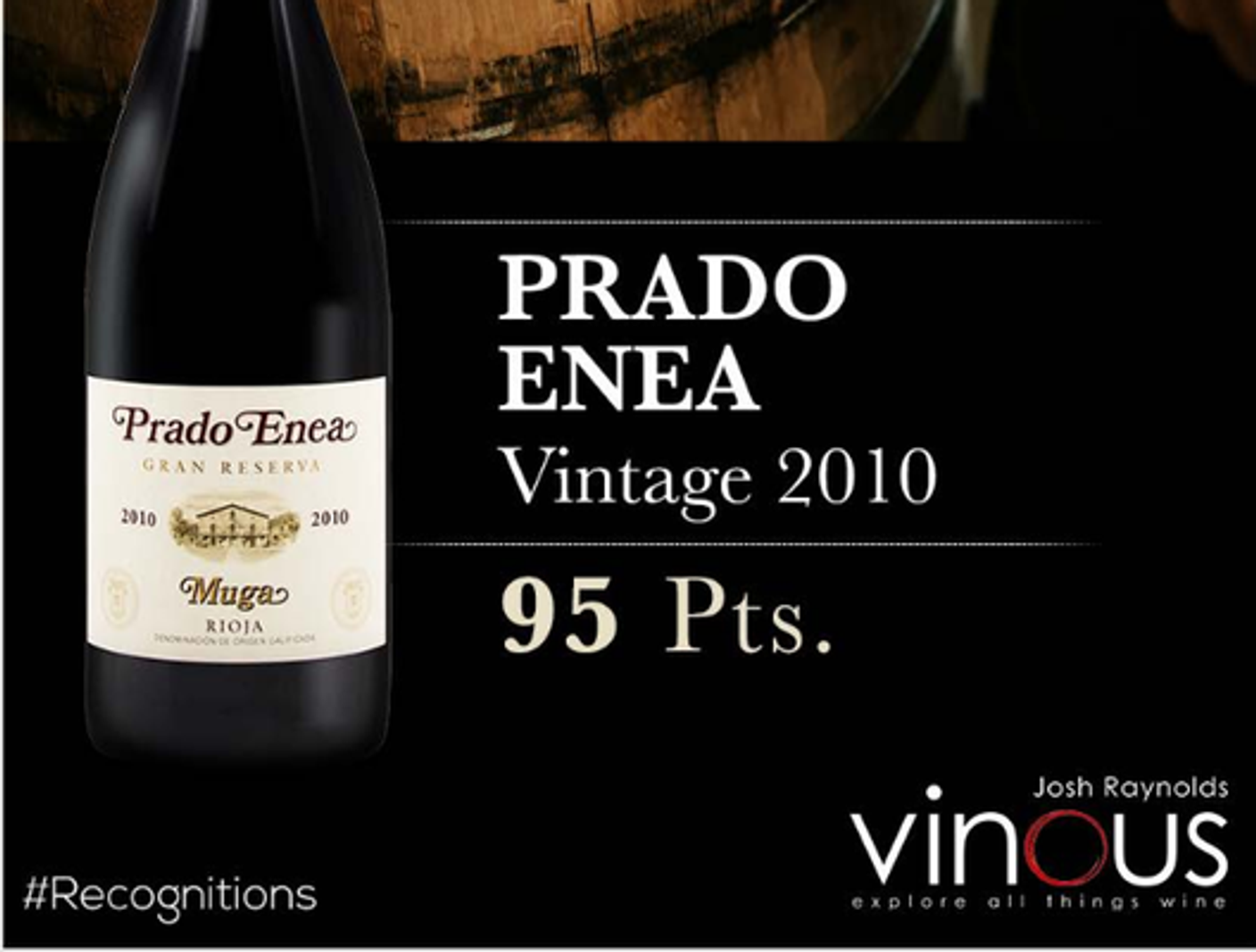 Самую высокую оценку в 95 баллов получило гран резерва Muga Prado Enea 2010. "Вино яркого, рубиново-красного цвета. Невероятно комплексный, выразительный букет с тонами красных ягод, вишневого ликера, трубочного табака, мокко и дымными минеральными нотами. Вкус с тонами сладкой черной малины, вишни, ванили и пряной пастилки демонстрирует впечатляющую глубину и внутреннюю энергию, подчеркнутую нотами специй и горького шоколада. Вино сочетает в себе мощь и деликатность, и завершается упругим, сладким, очень долгим послевкусием с шелковистыми танинами."