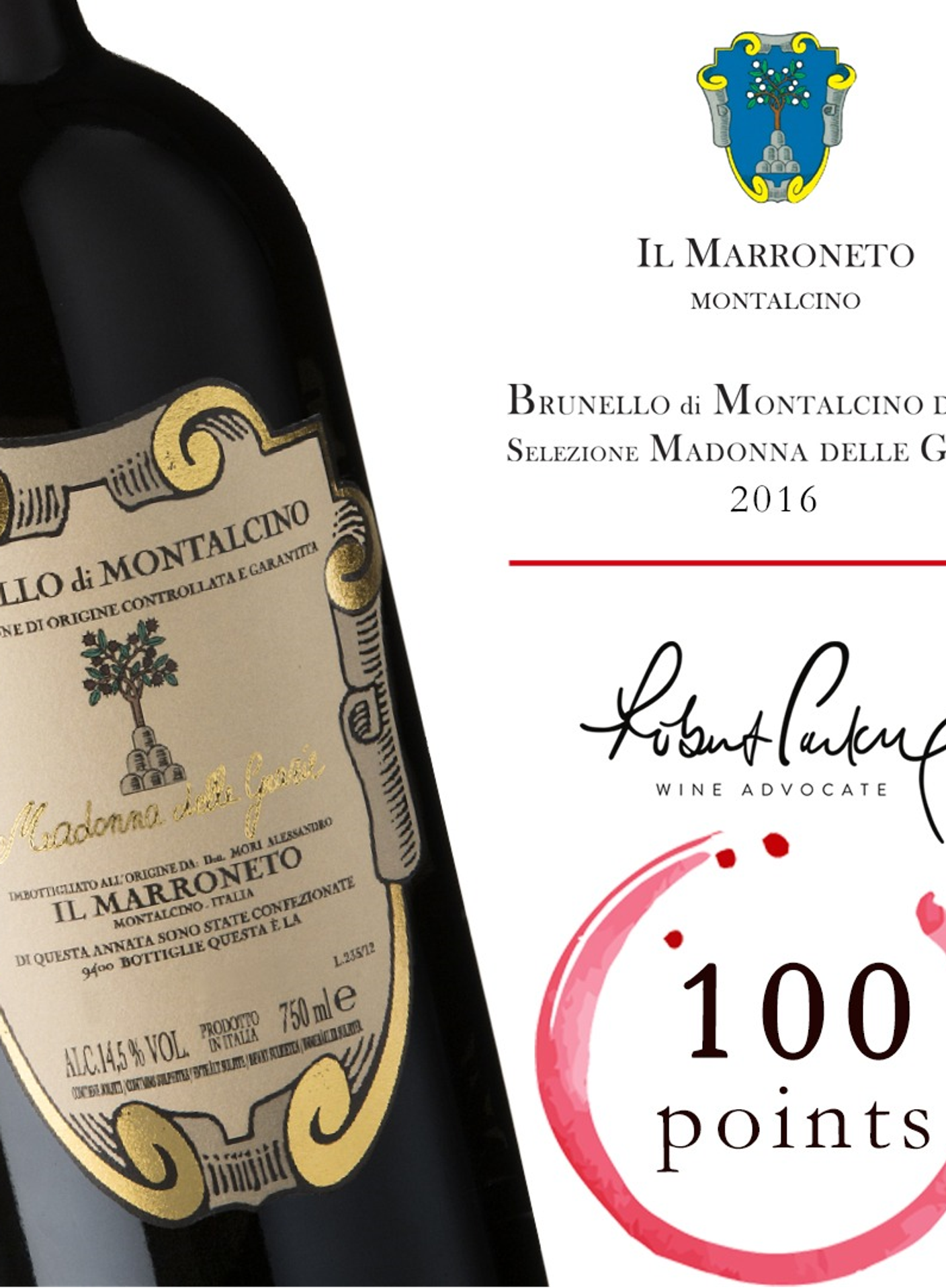 Очередной громкий успех Алессандро Мори, его флагманское Il Marroneto Brunello di Montalcino Madonna delle Grazie 2016 получает 100 из 100 возможных от Robert Parker! В России это вино появится в следующем году, так что придётся проявить терпение. Сейчас доступен предыдущий, 2015-й винтаж, тоже 100 балльный, но в другом рейтинге - Wine Enthusiast.