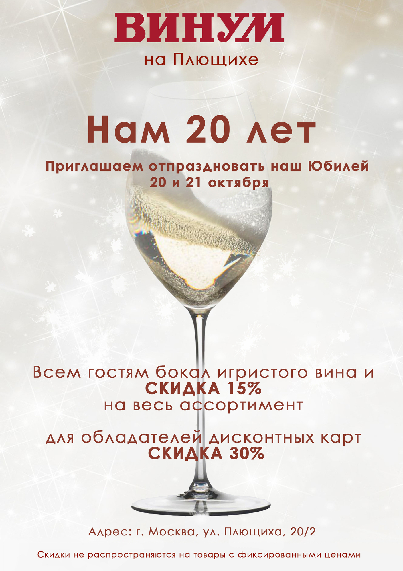 Приглашаем разделить с нами это особое событие 21 и 22 октября бокалом игристого вина.