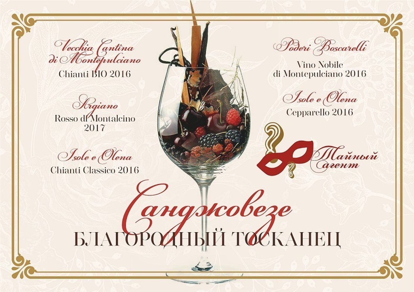Что может быть лучше интересной дегустации в приятной компании, в комфортной атмосфере нашего бутика!? Приглашаем Вас поближе познакомится с самым, пожалуй, известным и любимым САНДЖОВЕЗЕ. Многогранный тосканец способен радовать и удивлять в различных своих проявлениях, от простецких и вкусных вин «на каждый день», до утончённых Брунелло и Вино Нобиле, роскошных и богатых «супертосканских».